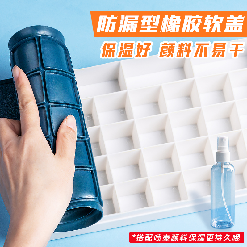24色格软盖颜料盒36色格调色盒48色格美术生专用便携密封保湿带盖分装空盒丙烯油画水粉水彩42格大小格子