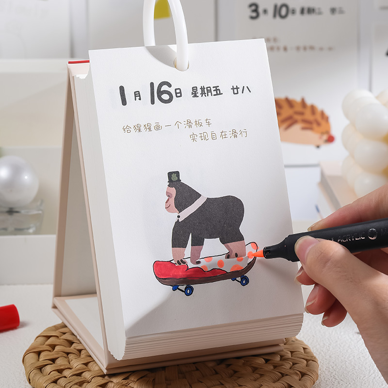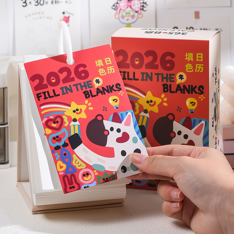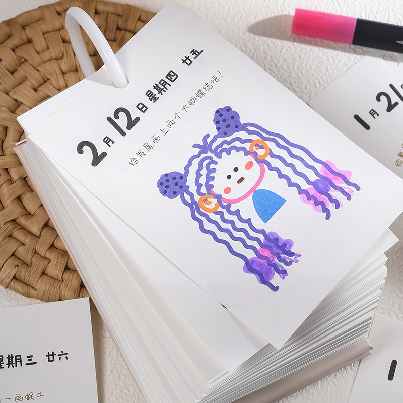 2026年填色涂鸦日历【每日一画彩铅马克笔均可】日历新款填色日历高颜值创意一日一撕台历办公室桌面摆件今日