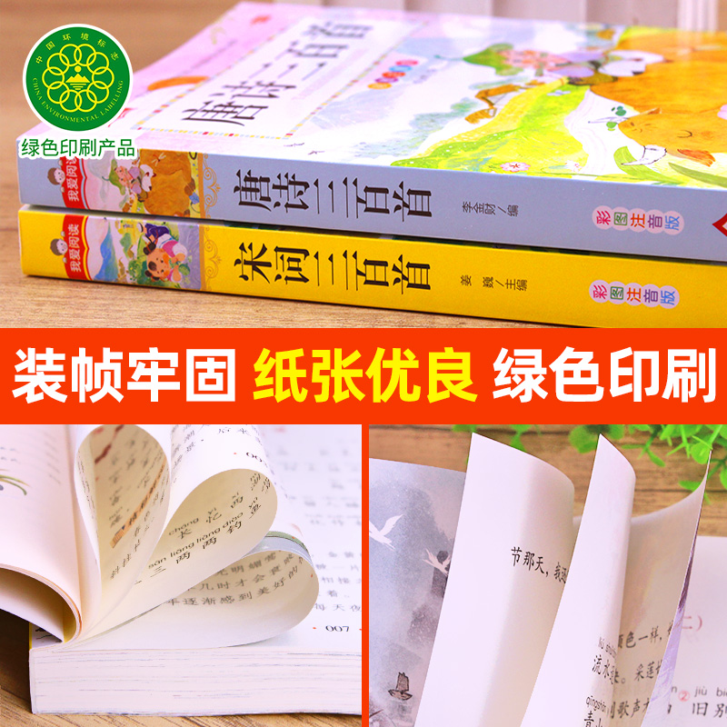 大字护眼唐诗宋词三百首完整版正版全集2册彩图注音版儿童版小学生背必古诗词300首一年级带拼音课外阅读书籍早教启蒙国学经典