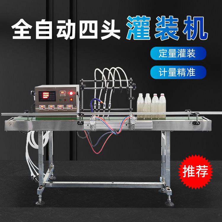 全自动四头数控液体灌装机玻璃水果汁饮料牛奶分装小型灌装输送线