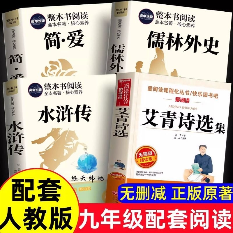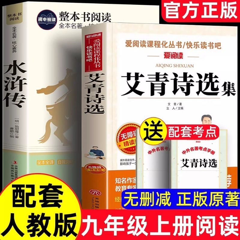 水浒传和艾青诗选原著正版简儒林外史九年级下册必读名著全套4册完整版初中生课外阅读书籍上课外书九年级上册书考点无删减上下册