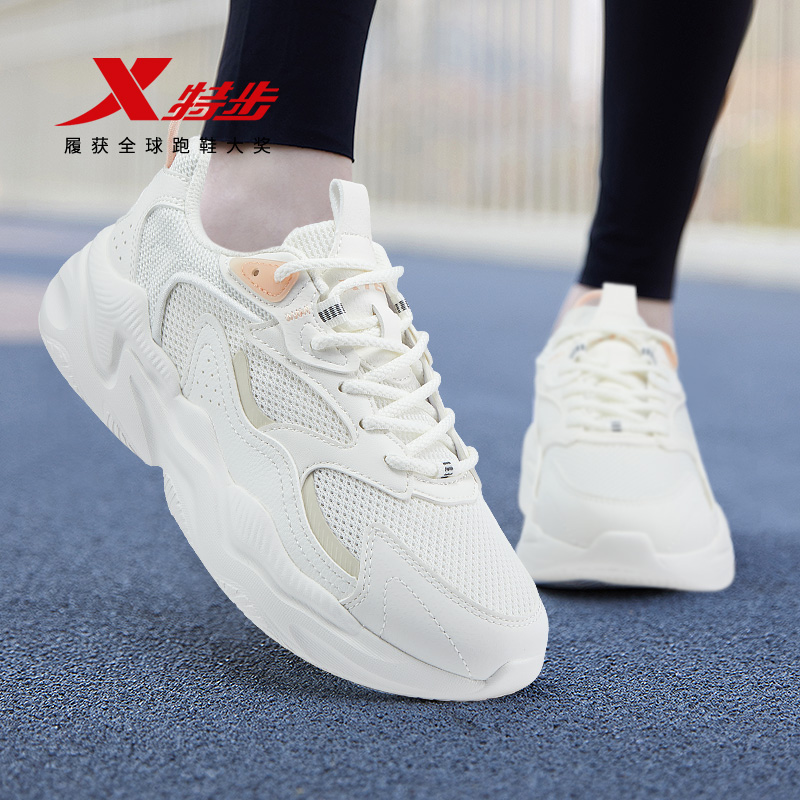 特步女鞋2025新款夏季网面透气学生运动鞋女款厚底增高休闲老爹鞋