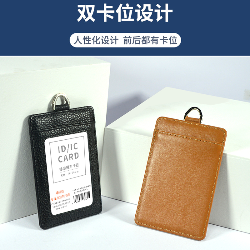 真皮工作证头层牛皮工牌胸卡门禁卡胸牌证件挂套学生挂脖证件套