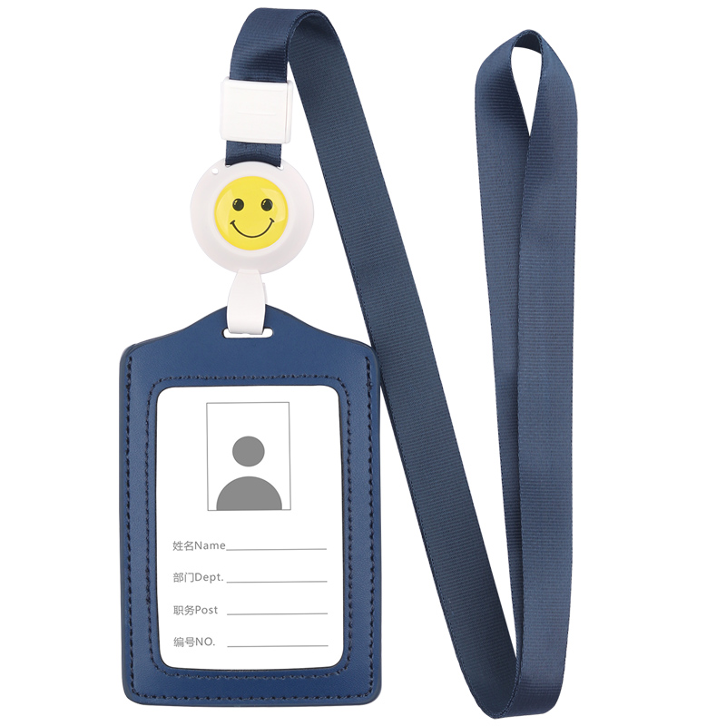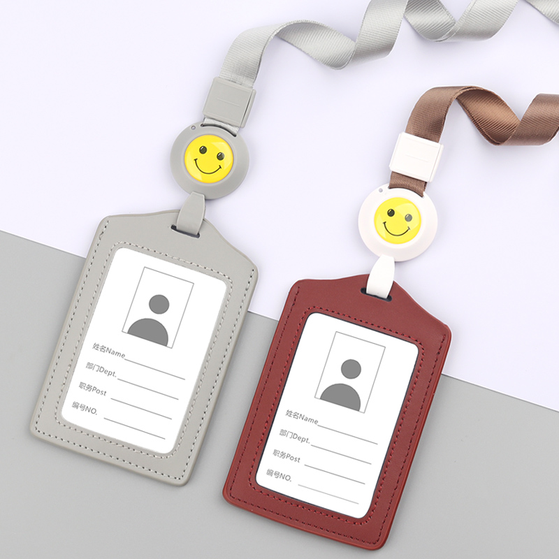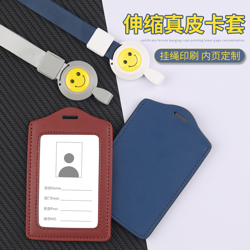 双面透明真皮工作牌证件卡套挂绳员工工号牌门禁保护套校园卡横款