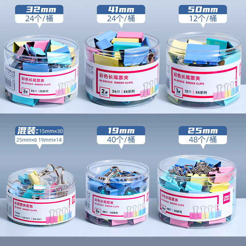 得力彩色长尾夹票据夹小号燕尾夹大号资料夹子分类多功能书夹子试卷夹凤尾夹文件夹子文具办公用品金属小夹子