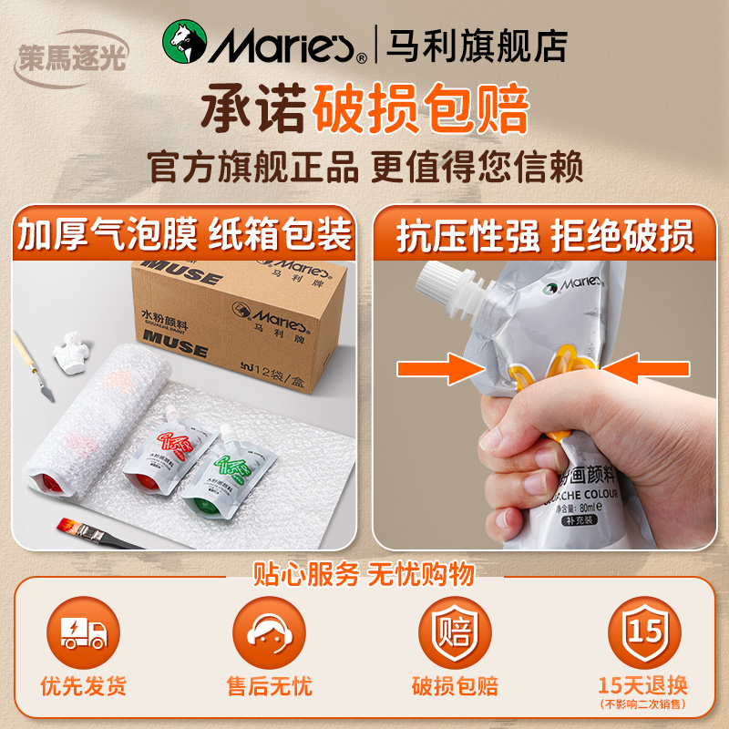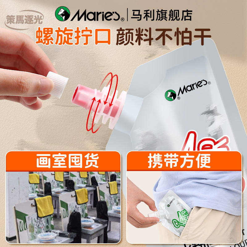 马利水粉颜料补充包袋装100ml美术生专用白色500钛白画画色彩颜料300ml拿坡里黄浅灰蓝柠檬黄玛丽官方旗舰店
