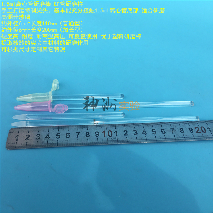 1.5ml离心管玻璃研磨棒 EP管研磨杵 特制尖头充分贴合内底6*110mm