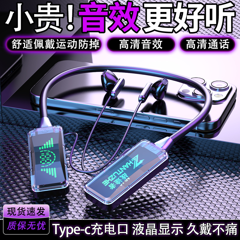 2025新款蓝牙耳机挂脖式运动健身送外卖持久续航K歌耳返男女通用