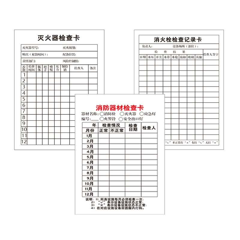 灭火器巡检卡检查卡记录卡消防标识标牌消火栓点检卡消防器材检查卡提示牌养护卡防护卡点检表防水卡片套定制