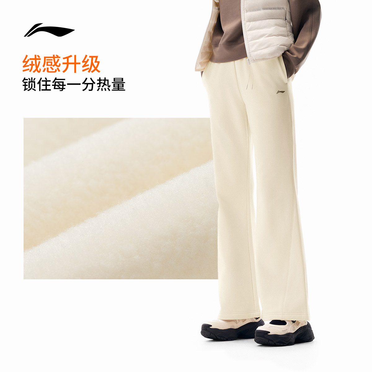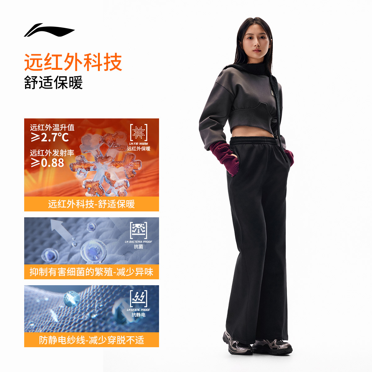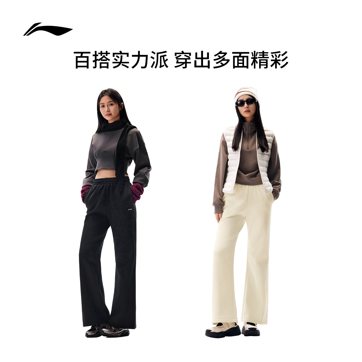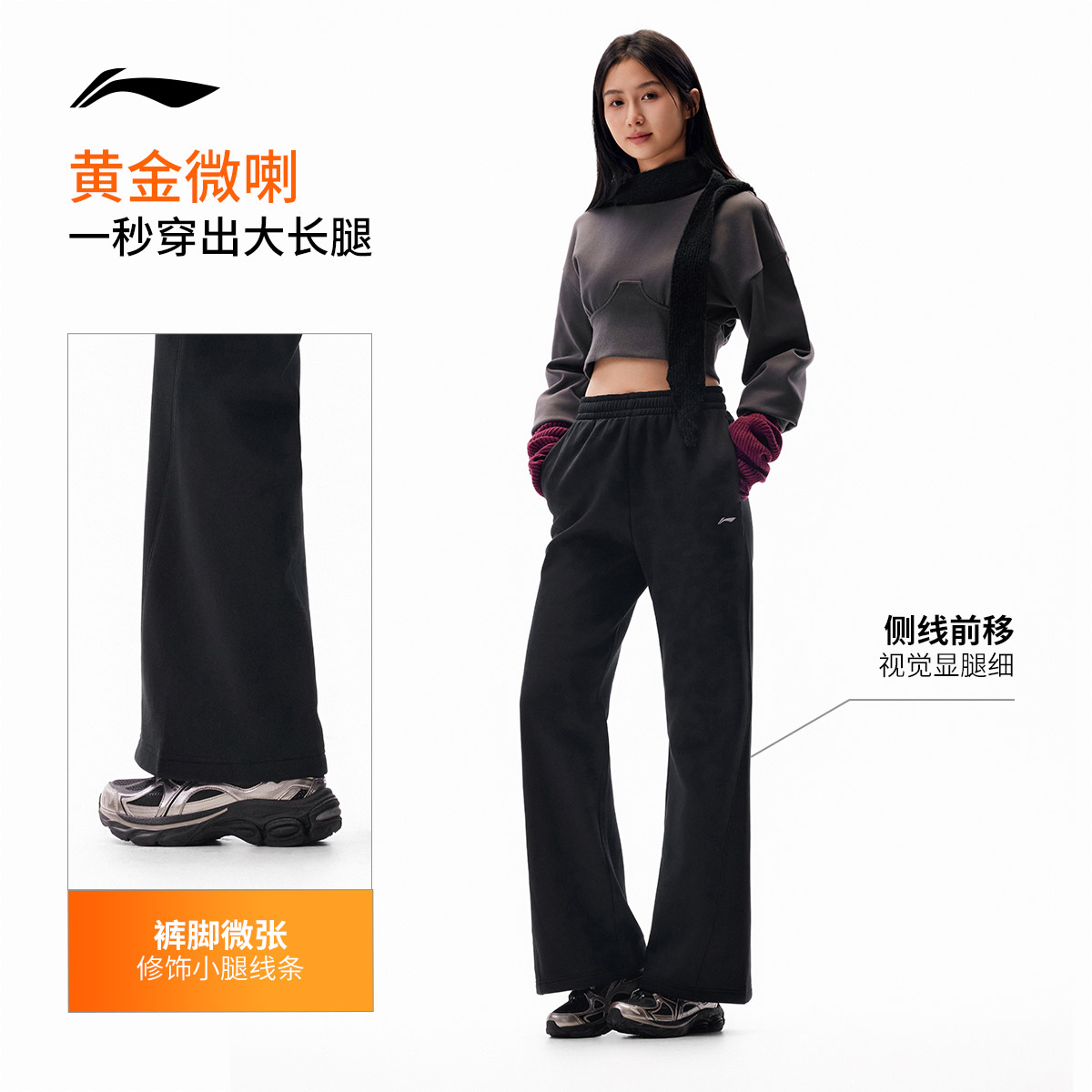 李宁奶芙裤丨阔腿裤女秋冬微喇裤休闲加绒运动裤直筒黑色卫裤