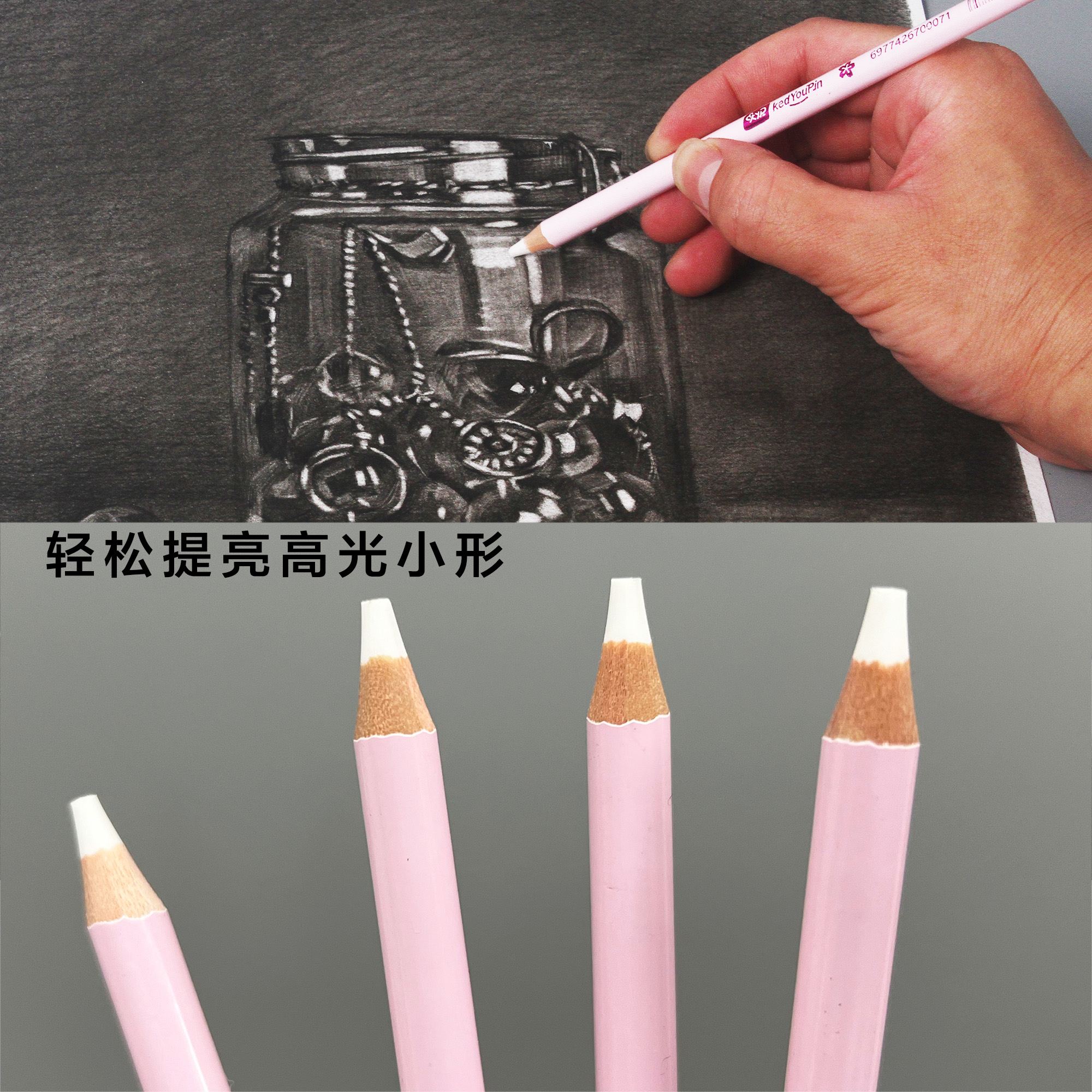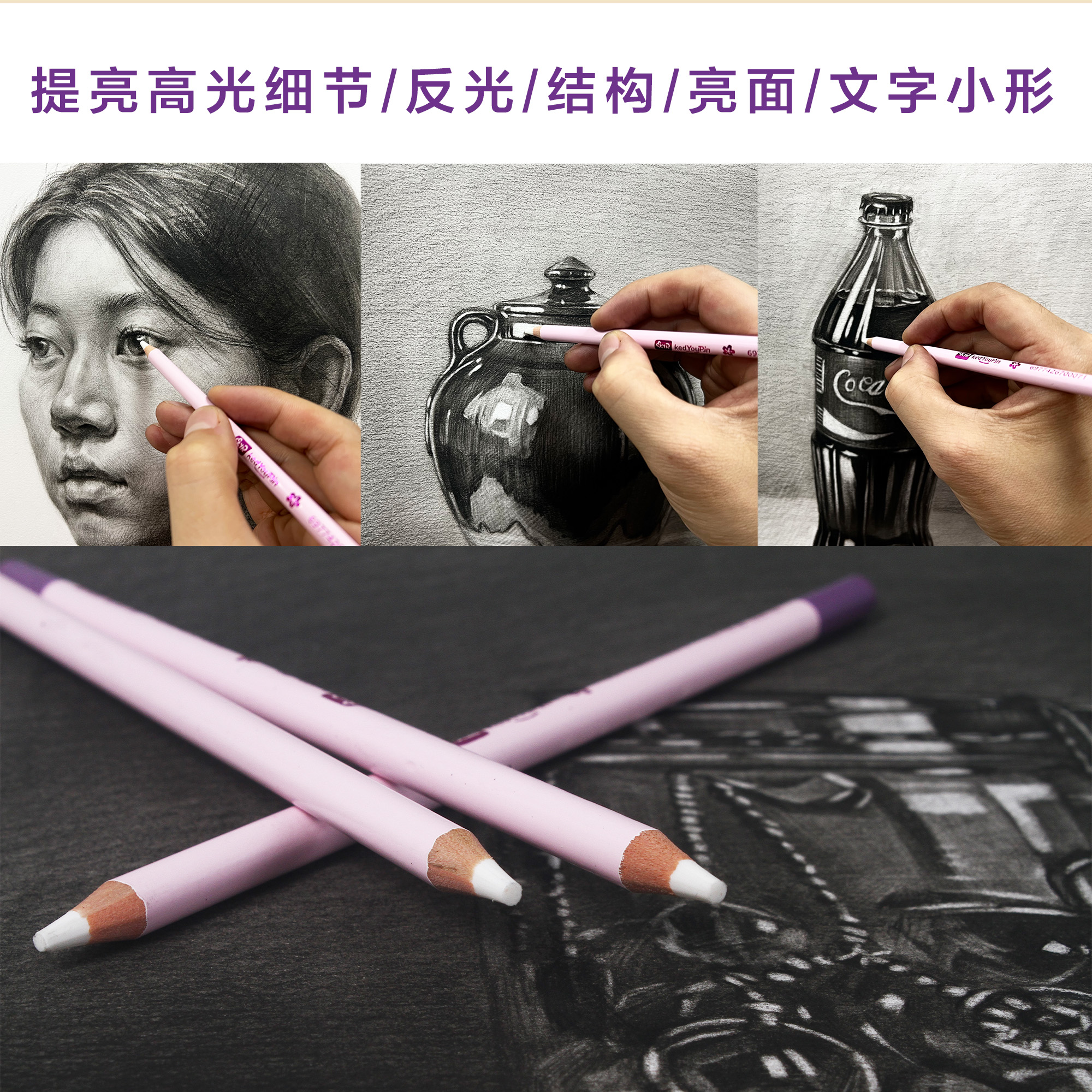 KAD卡德优品粉色系橡皮笔绘画炭笔擦白净高光美术专用集屑无痕