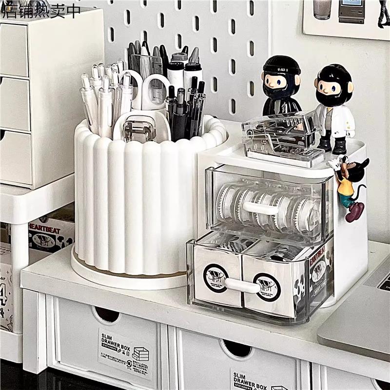 日本笔筒办公室桌面收纳盒学生轻奢高级感大容量超大旋转高颜值ins风创意可爱多功能艺术感2025新款简约儿童