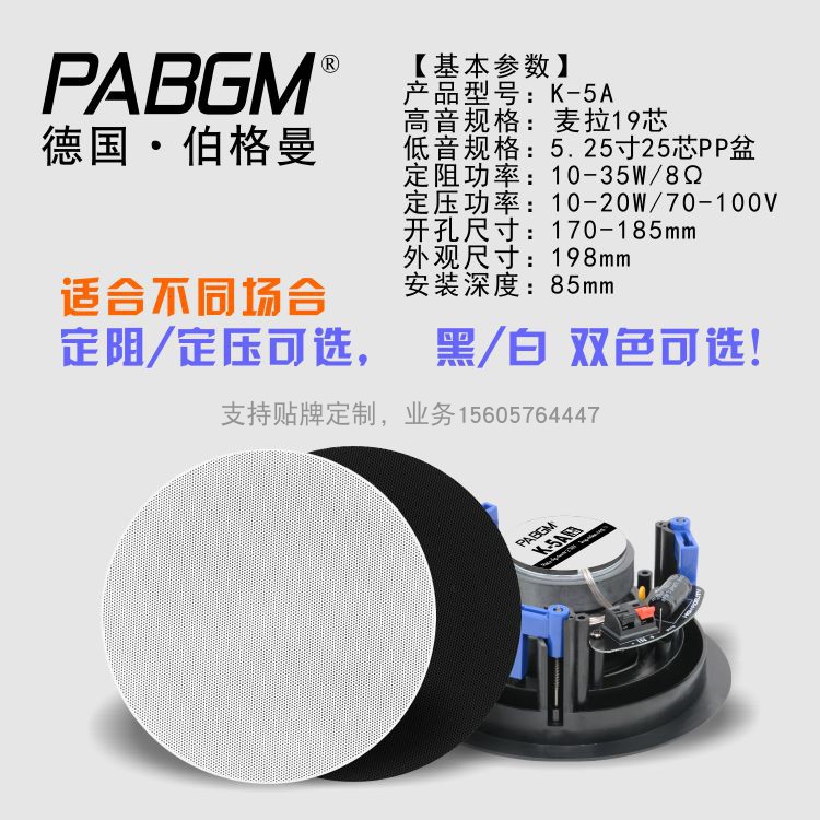 重低音黑色吸顶喇叭定阻同轴天花背景音乐悬吊式天花板音箱150/18