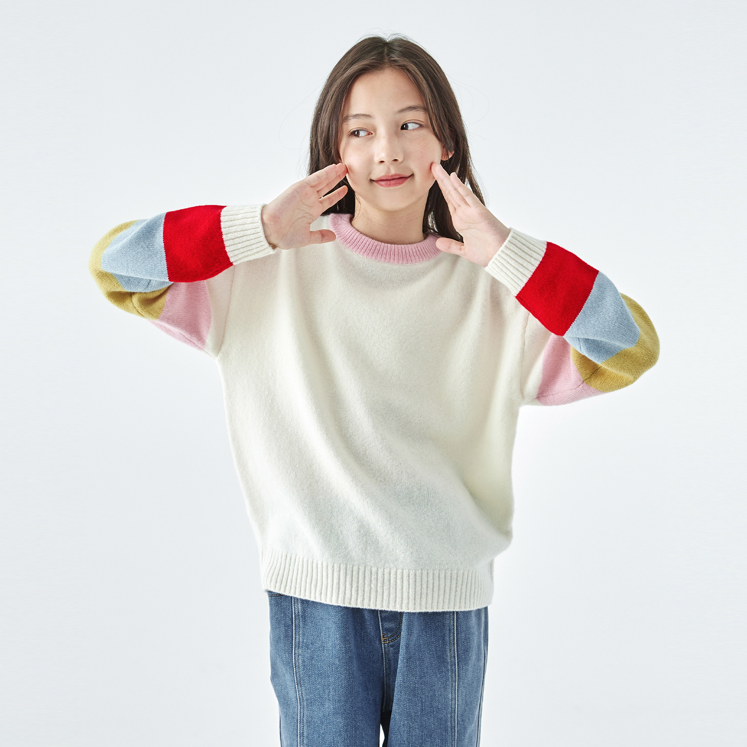 棵初「彩虹糖」25年秋冬季新款亲子中大童撞色彩条毛衣全羊毛上衣