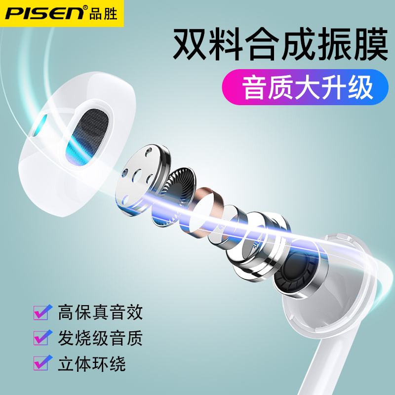 品胜有线耳机入耳式重低音K歌线控带麦降噪3.5m圆孔耳塞安卓typec