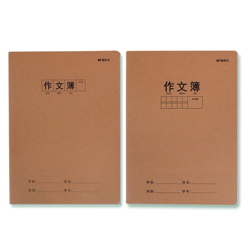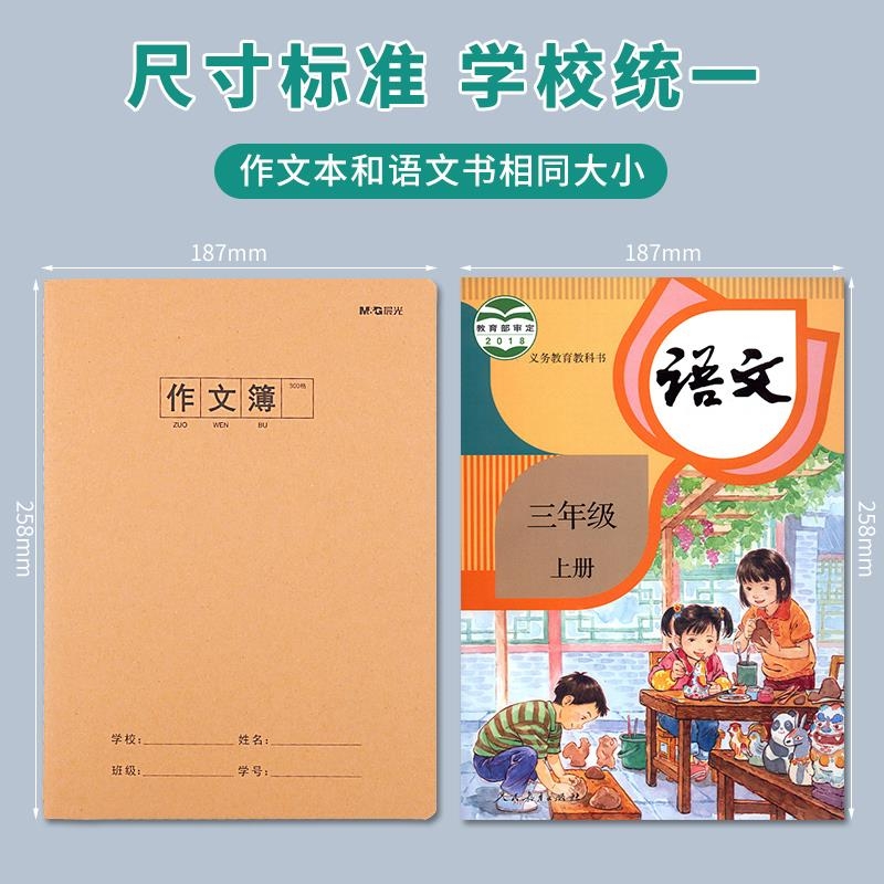 晨光16K牛皮纸封皮作文本加厚400格500方格语文缝线作文本子小学生三四年级初中生读书笔记A5作文簿学校护眼