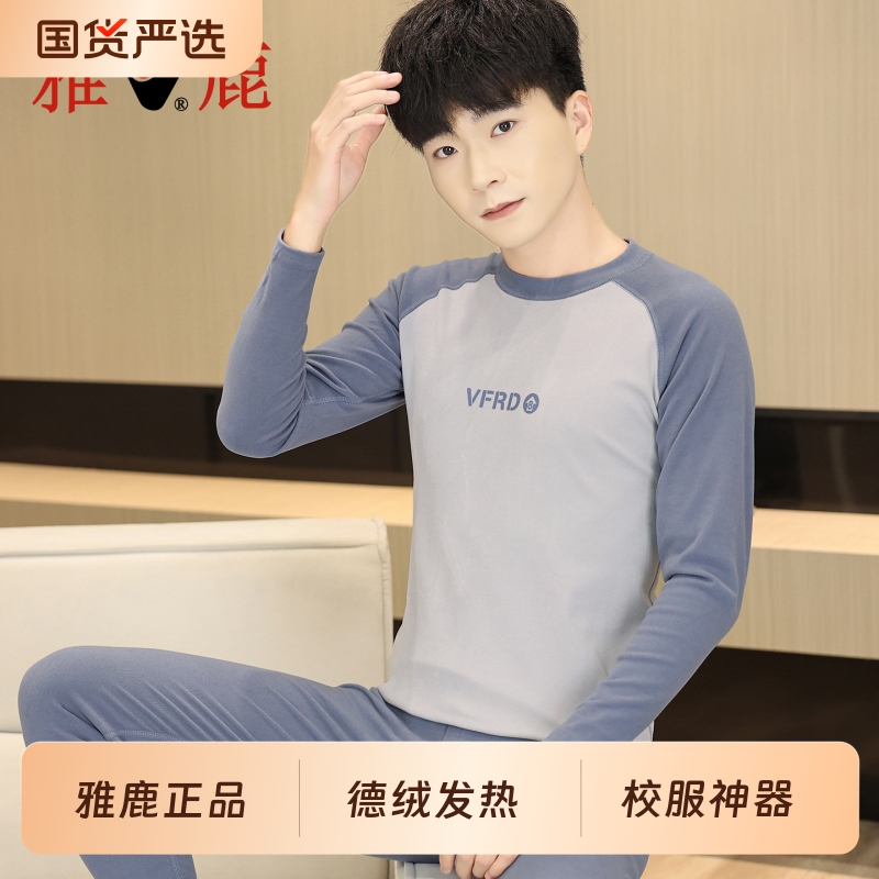 雅鹿男士保暖内衣套装德绒发热内穿打底青少年学生秋衣秋裤冬季