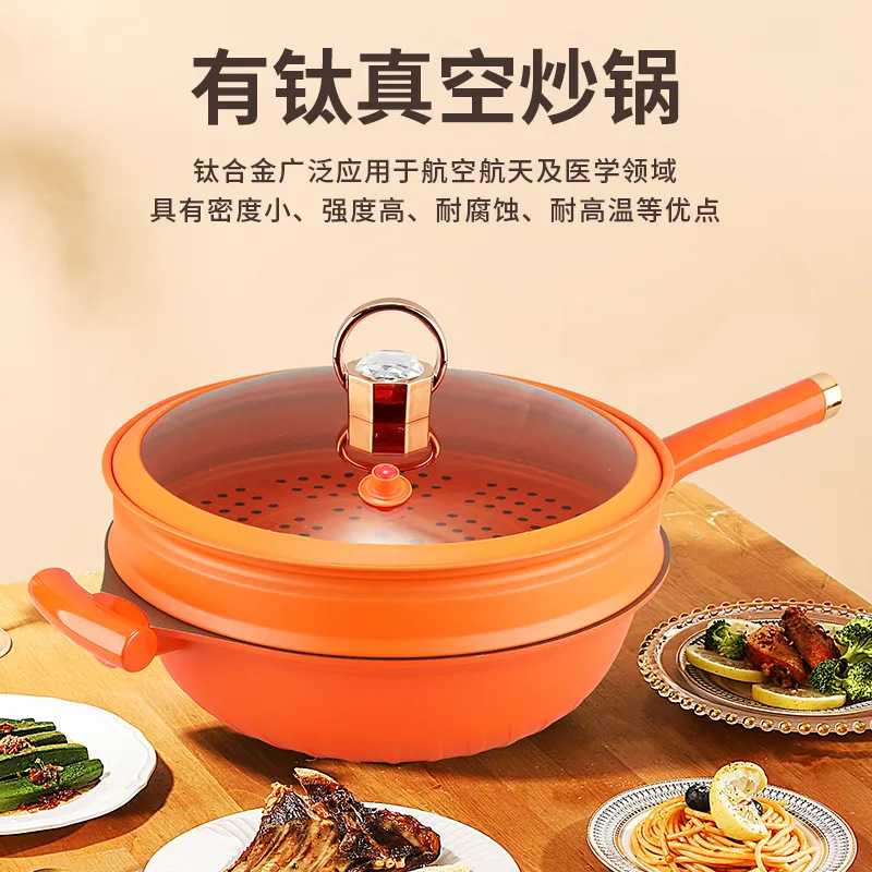 艾可熊家用钛锅微压不粘锅煎煮无烟少油炒锅带蒸屉煎煮多功能一体