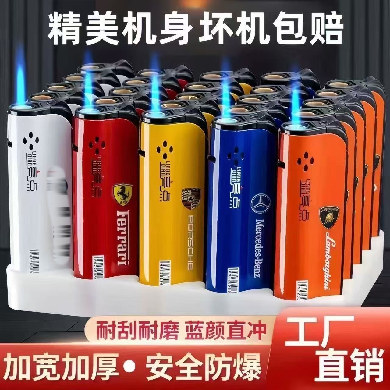蓝焰直冲防风创意车标一次性可充气打火机耐用防爆商超批发火机