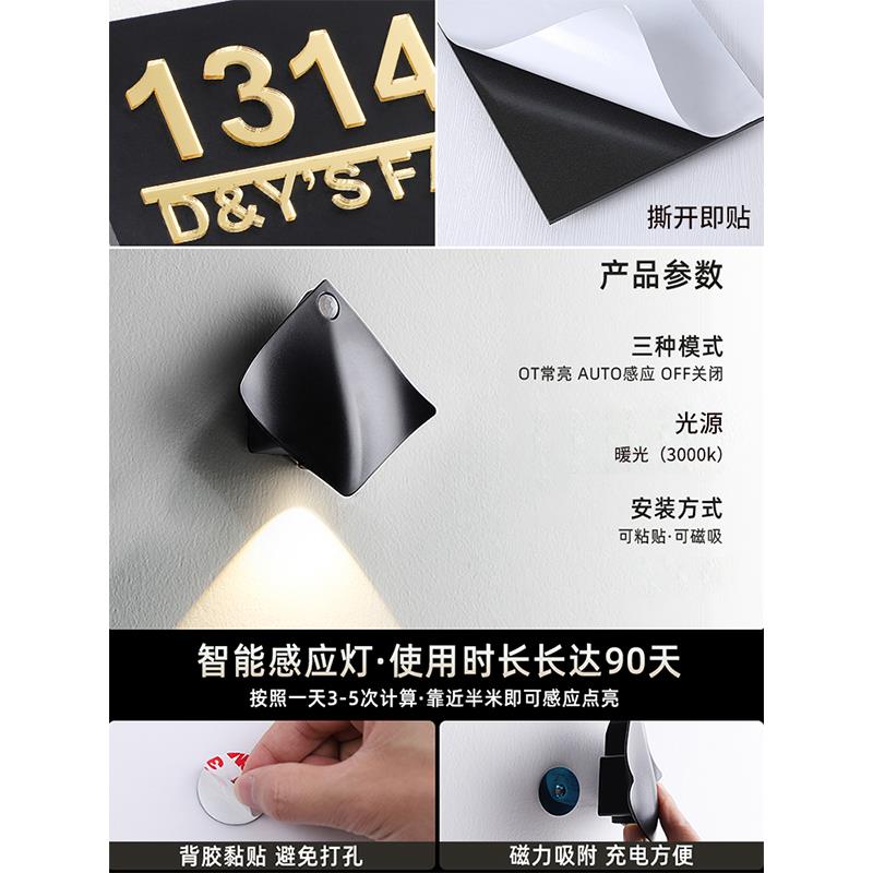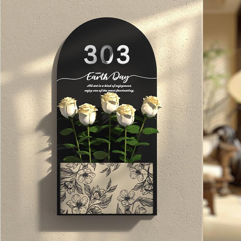 网红入户门牌插花家用门牌号高级感轻奢创意感应门牌入户装饰号码牌法式中古风门牌定制压克力回家仪式感标牌