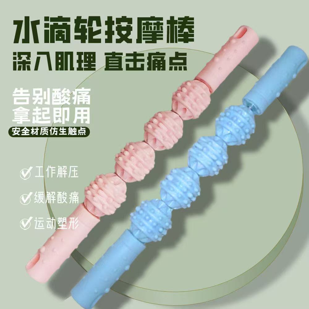 瑜伽狼牙按摩棒舒缓肌肉手持按摩棒四排全方位弯曲颈部腿部按摩器