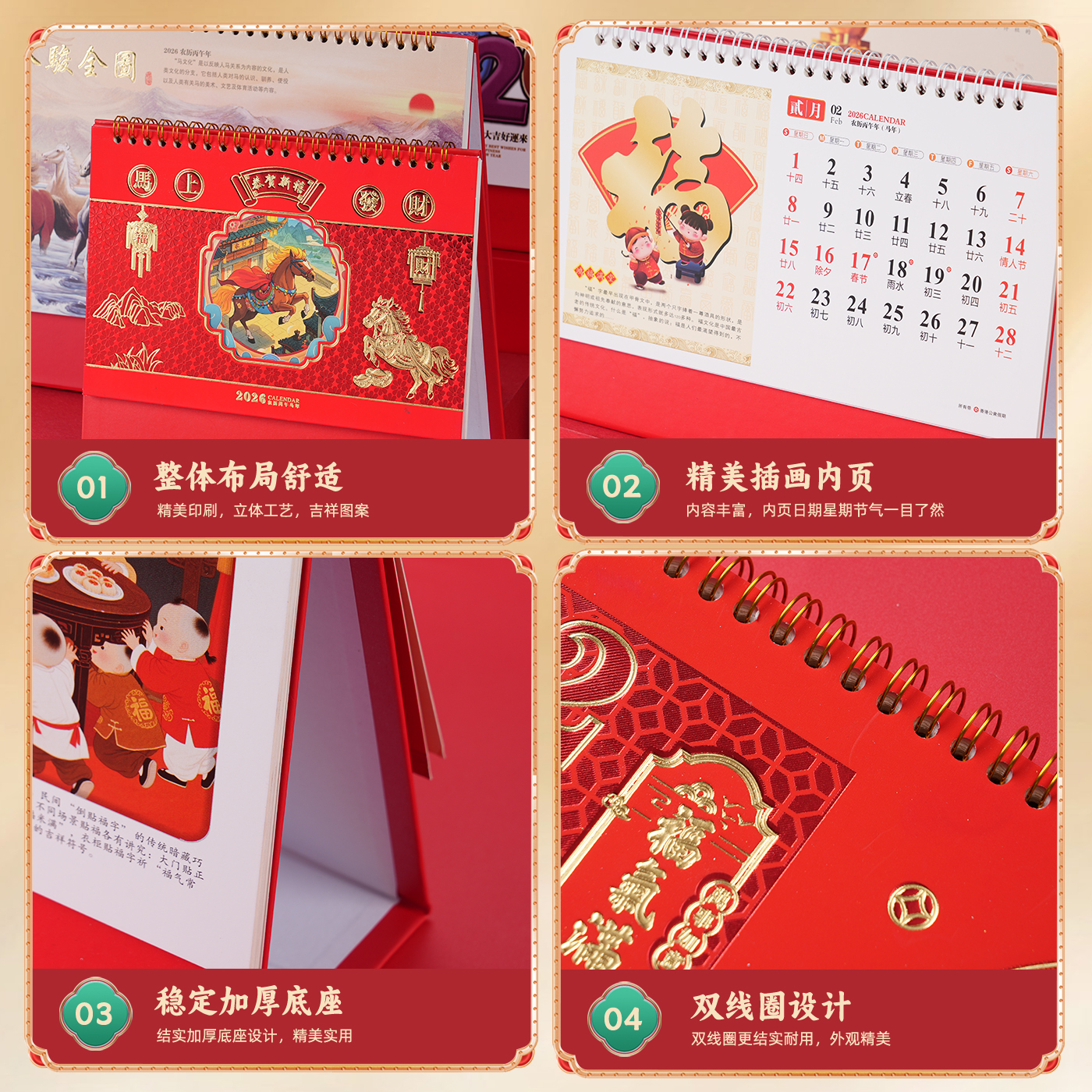 台历2026年新款日历2026马年三角台历定制定做印刷广告新年桌面中国风台历简约月历黄历记事台历保险人寿定制