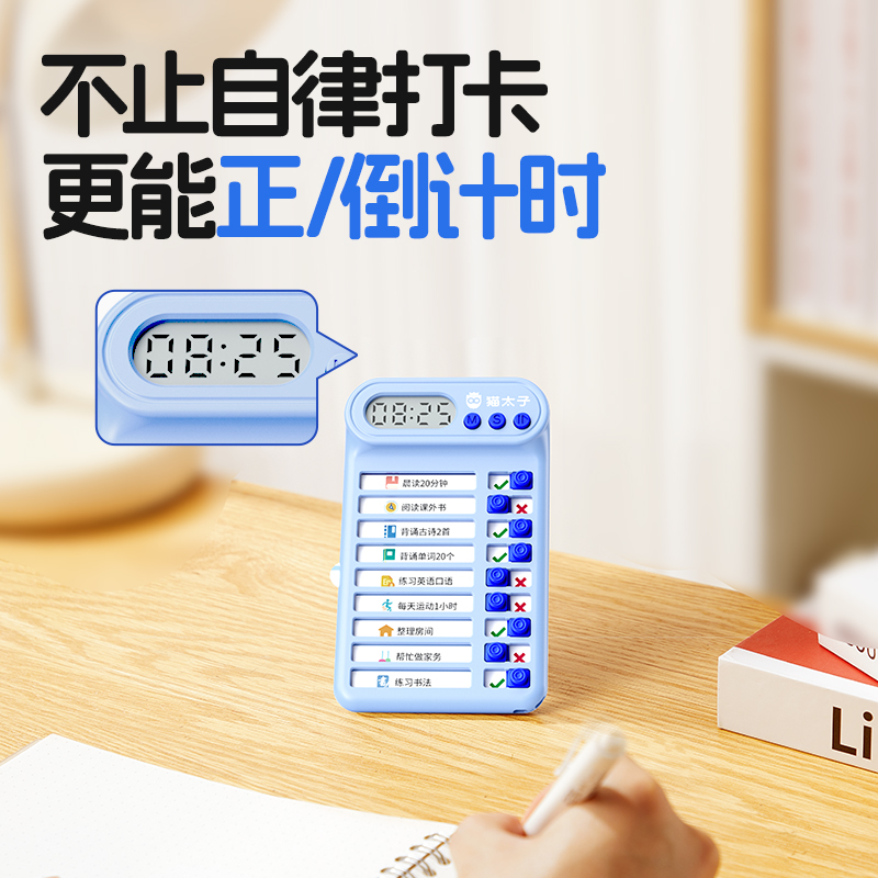猫太子自律打卡器小学生学习计划表作业暑假学习记录表暑期儿童打卡神器孩子时间管理器每日任务计划文具用品