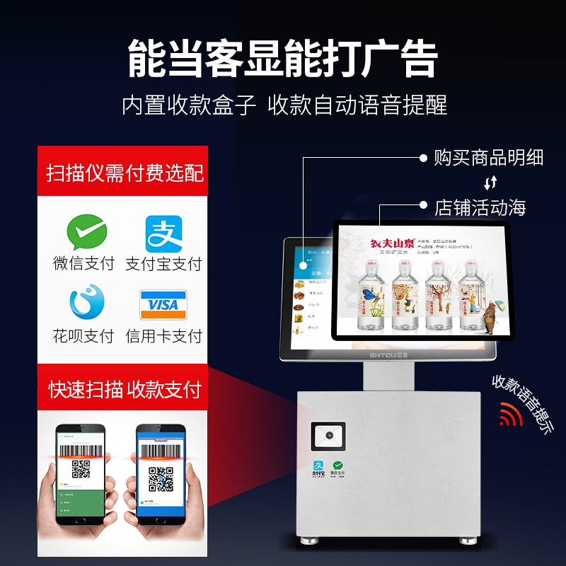 【芯友专卖】零售专用超市收款机便利店收银机一体机电脑win7四核高配通道机服装店小卖部药店文具店收银系统