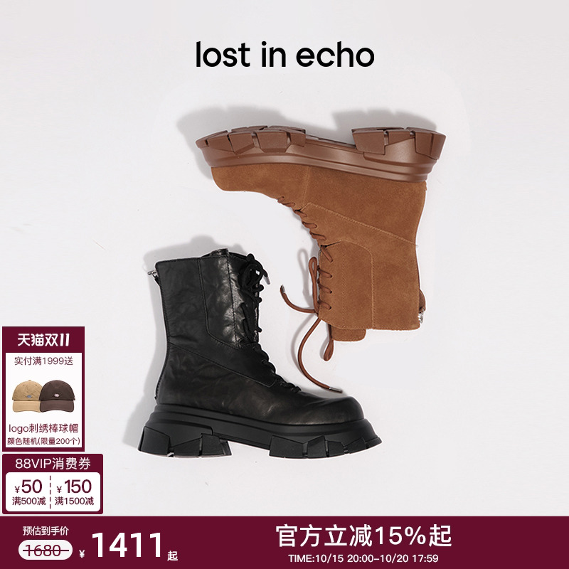 马君妍同款lost in echo户外厚底米奇头巴恩风真皮马丁靴大黄靴