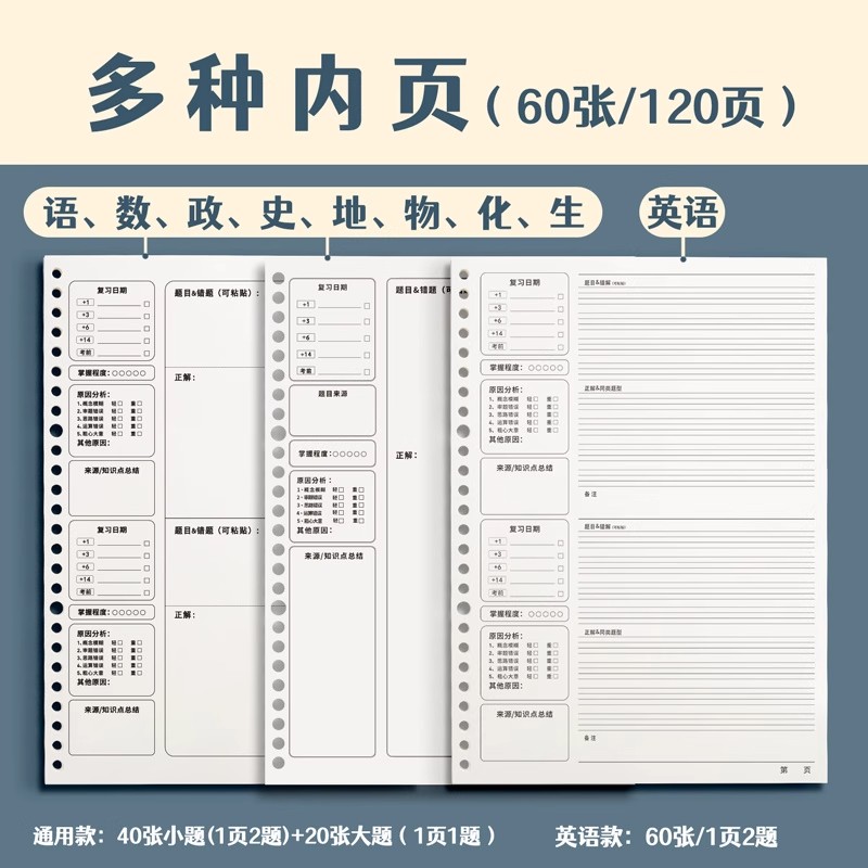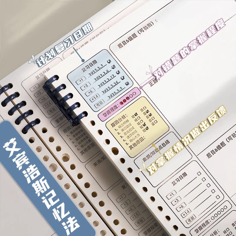 艾宾浩斯活页错题本初中生高中生专用英语文数学物理错题收集整理本纠错本高效订正改错本小学生作业纠正