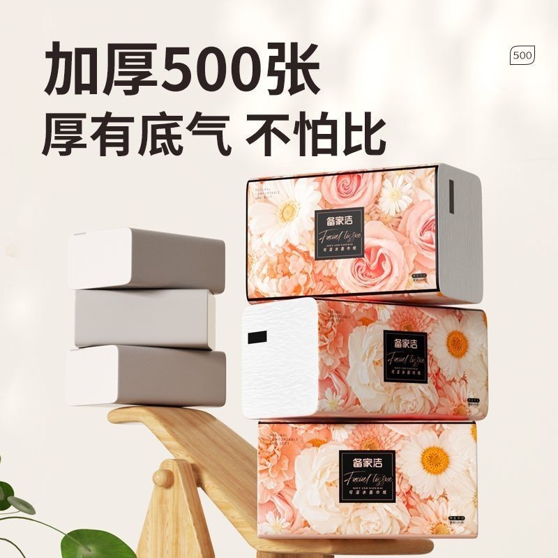 备家洁500足量可湿水不易破纯木浆无添加亲肤母婴干湿两用抽纸