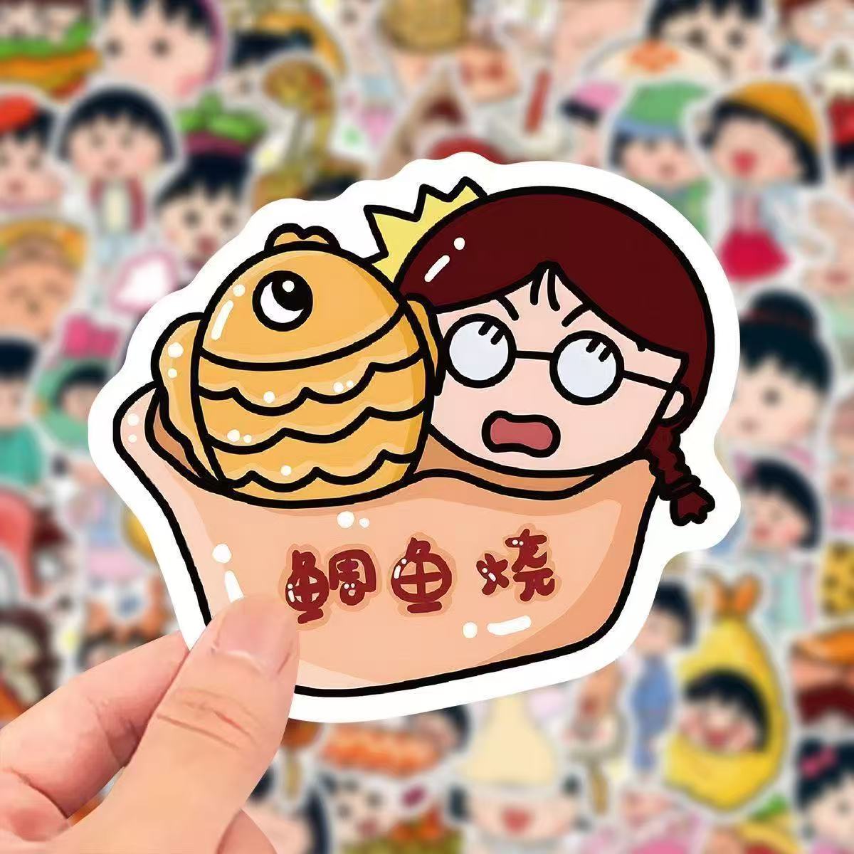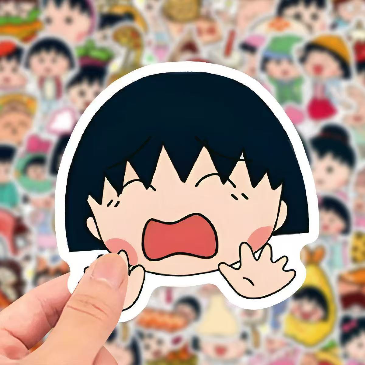 樱桃小丸子贴纸防水卡通手账贴画手账本手机壳素材可爱自粘贴画