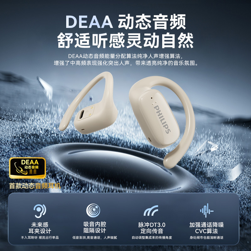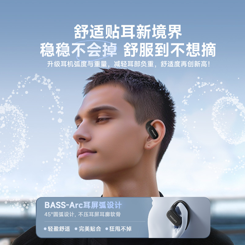 飞利浦TAT3708蓝牙耳机无线挂耳健身运动开放式气骨传导2025新款