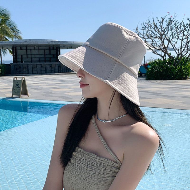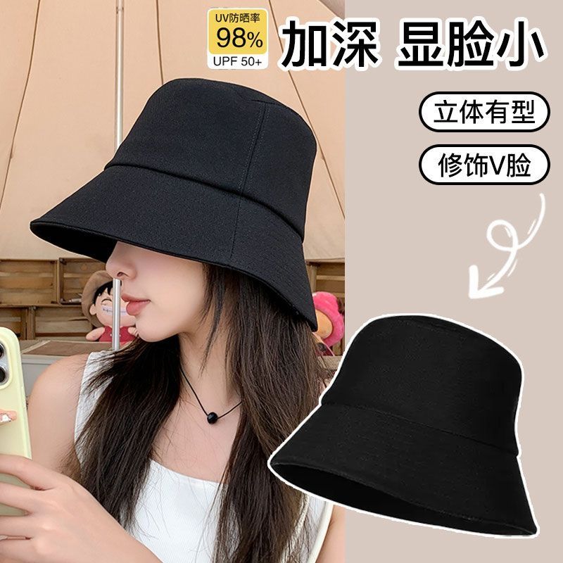 黑色渔夫帽子女夏秋季遮脸显脸小防晒水桶深顶盆帽大头围鱼夫旅游