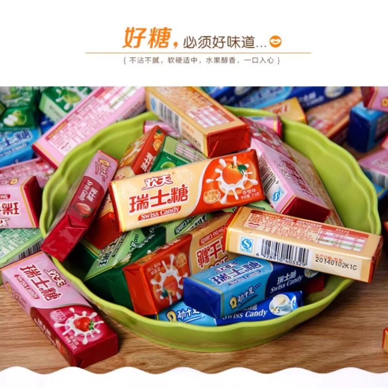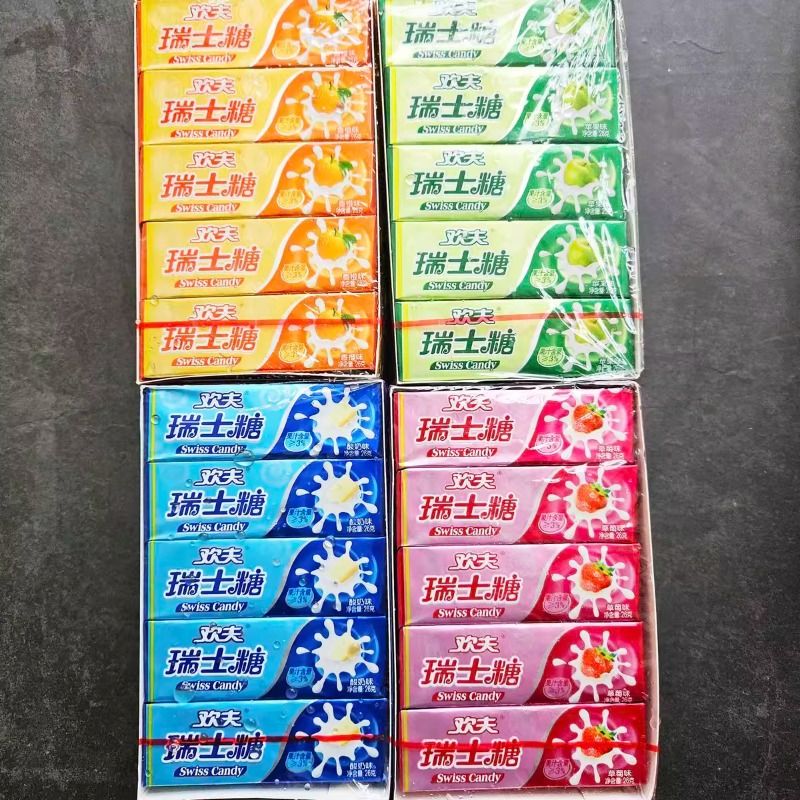 欢夫瑞士糖26g长条混合口味香橙牛奶草莓苹果糖果方块水果糖