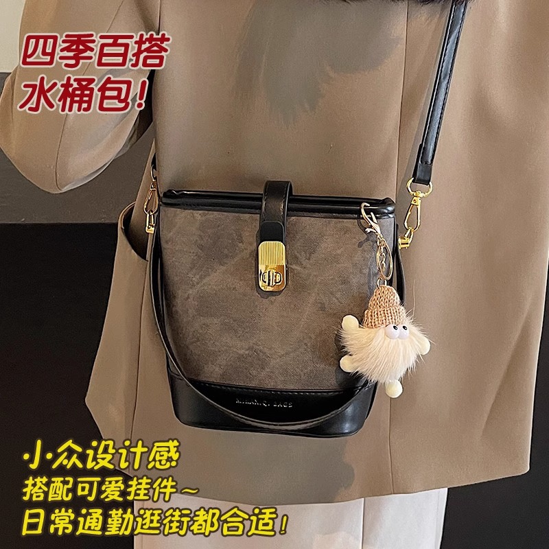 艾程新款包包女2025年爆款水桶包小众设计斜挎包高级感上班小拎包