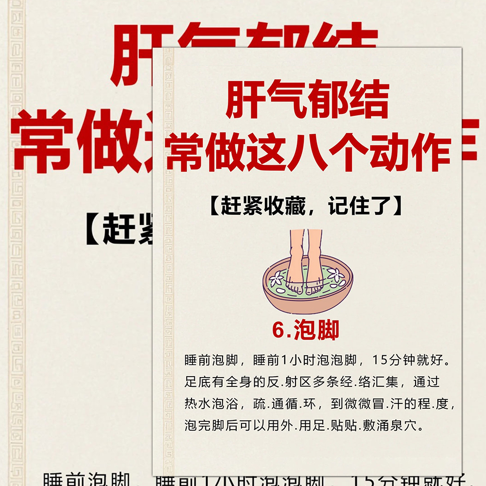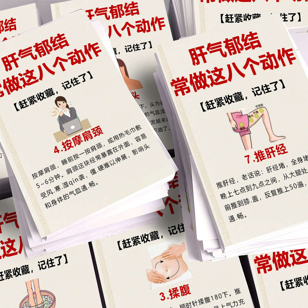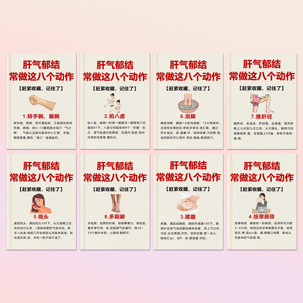 肝气郁结常做八个动作】中国健康养生疏通调理舒肝解郁知识小卡