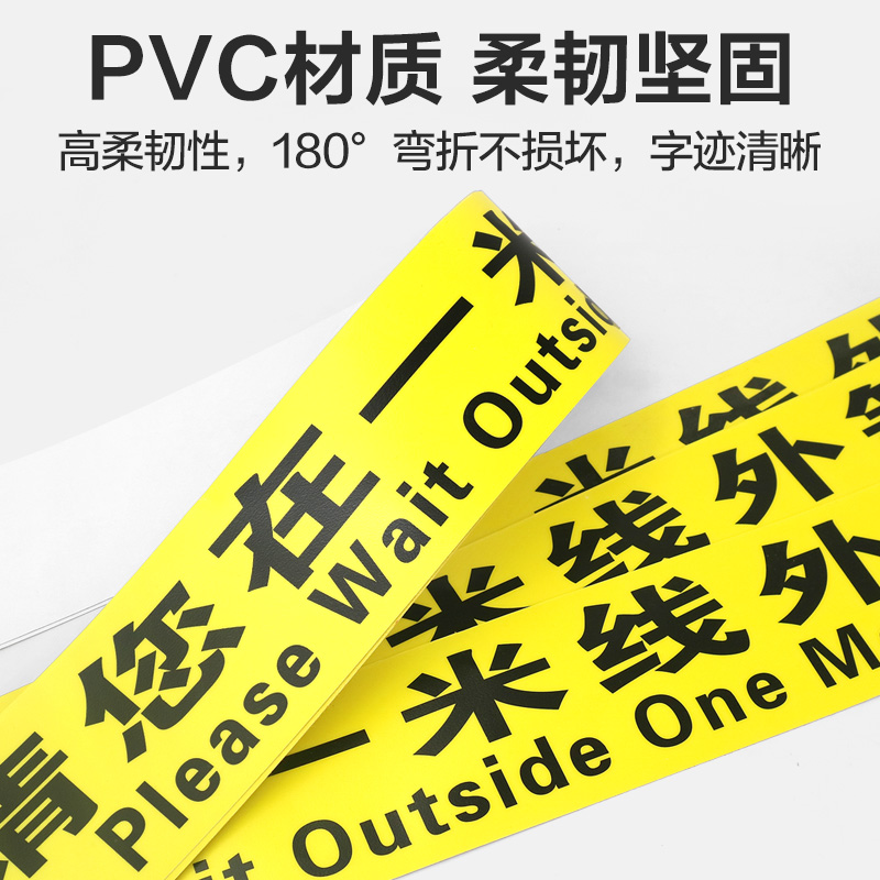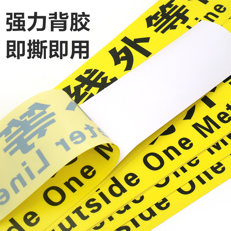 防疫一米线地贴医院银行酒店宾馆车站警示警戒线标志地面贴地板请在黄线外标识请在此外等候地贴防滑耐磨地标