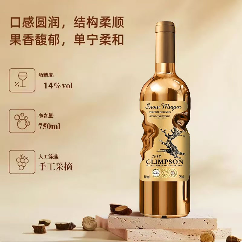 【法国正品】 天使之手14度克林普森干红葡萄酒750ml鎏金工艺瓶