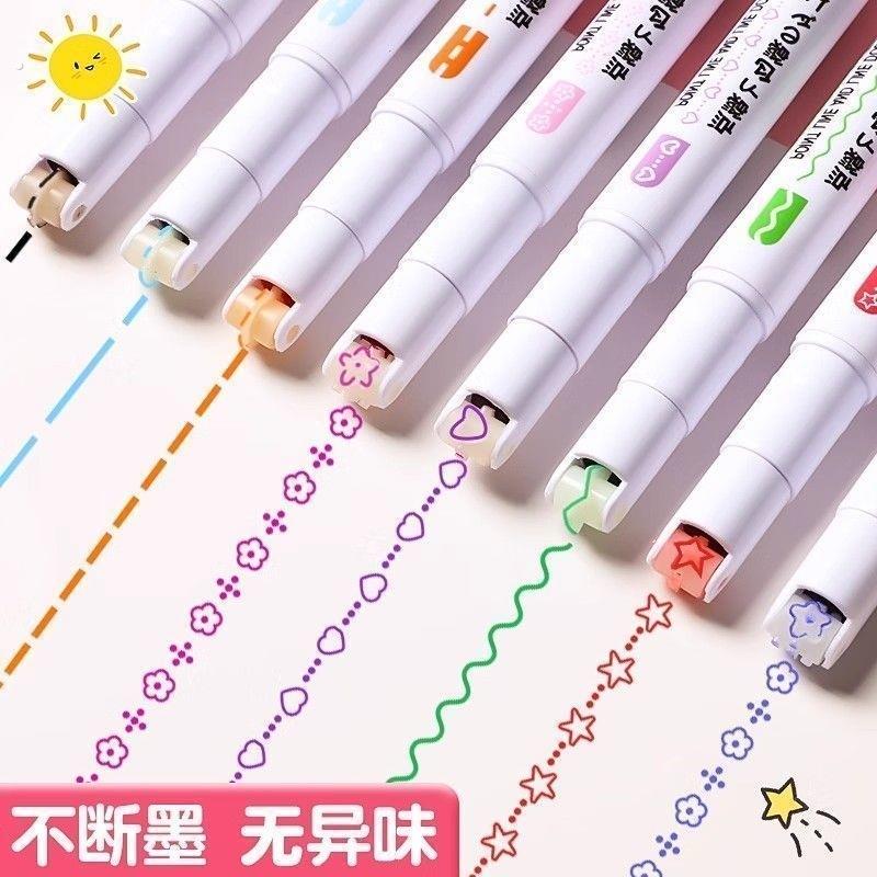 花型轮廓笔学生彩色波浪专用记号笔儿童花型花边曲线型花色笔荧光儿童记号手抄报印花线条手账滚轮线型笔