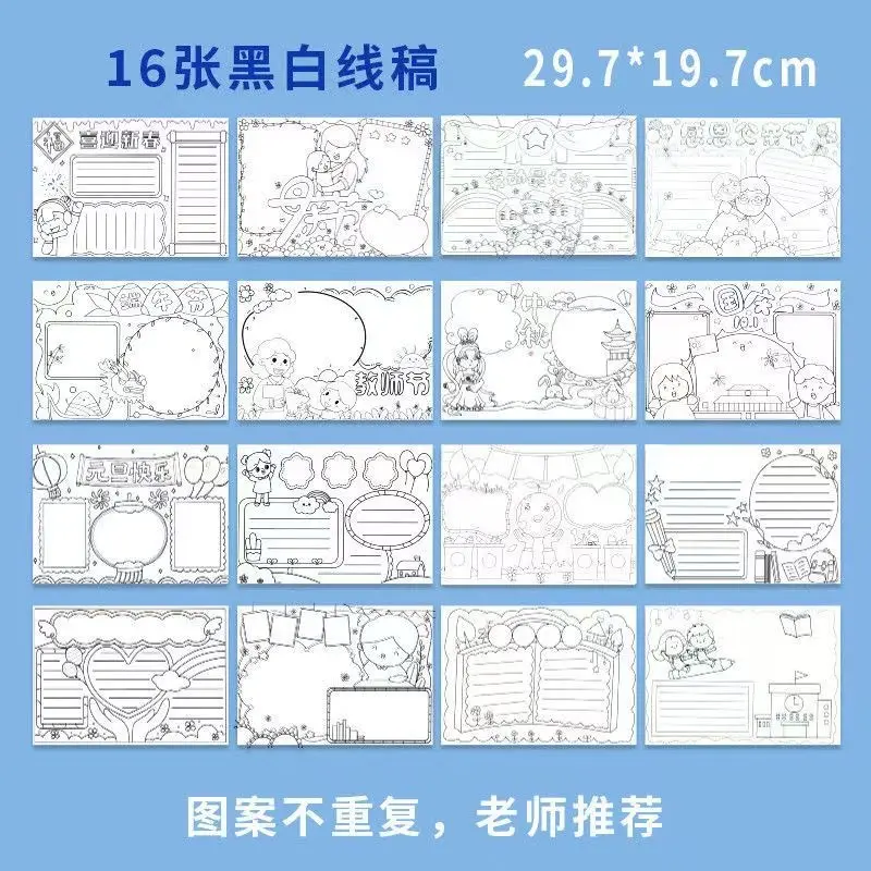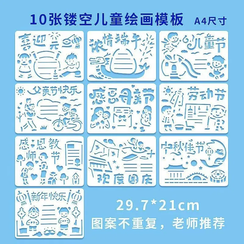 【开学季优选】46件套小学初中生手抄报镂空模版套装各种节日主题