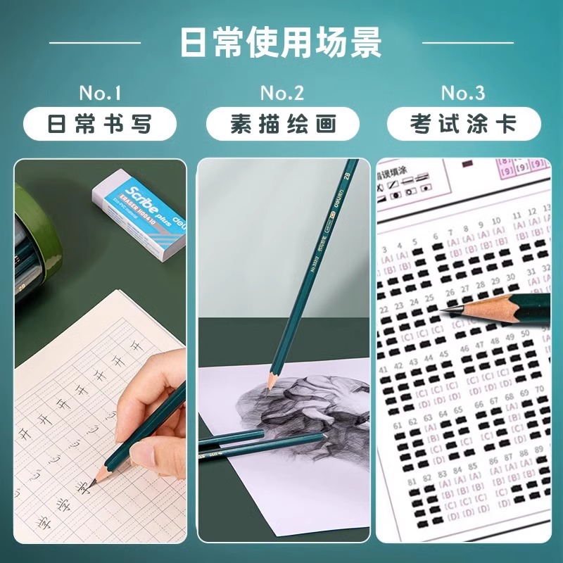晨光小红杆铅笔2b小学生专用一年级二年级安全无铅毒卷笔刀橡皮六角笔杆易抓握学生考试用答题卡hb木杆涂卡笔