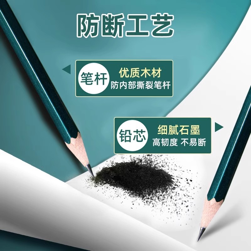 Nusign纽赛小绿杆黑木铅笔hb小学生专用一二年级学习用品正姿高颜值加粗铅芯无铅毒得力书写绘画矫姿素描初学