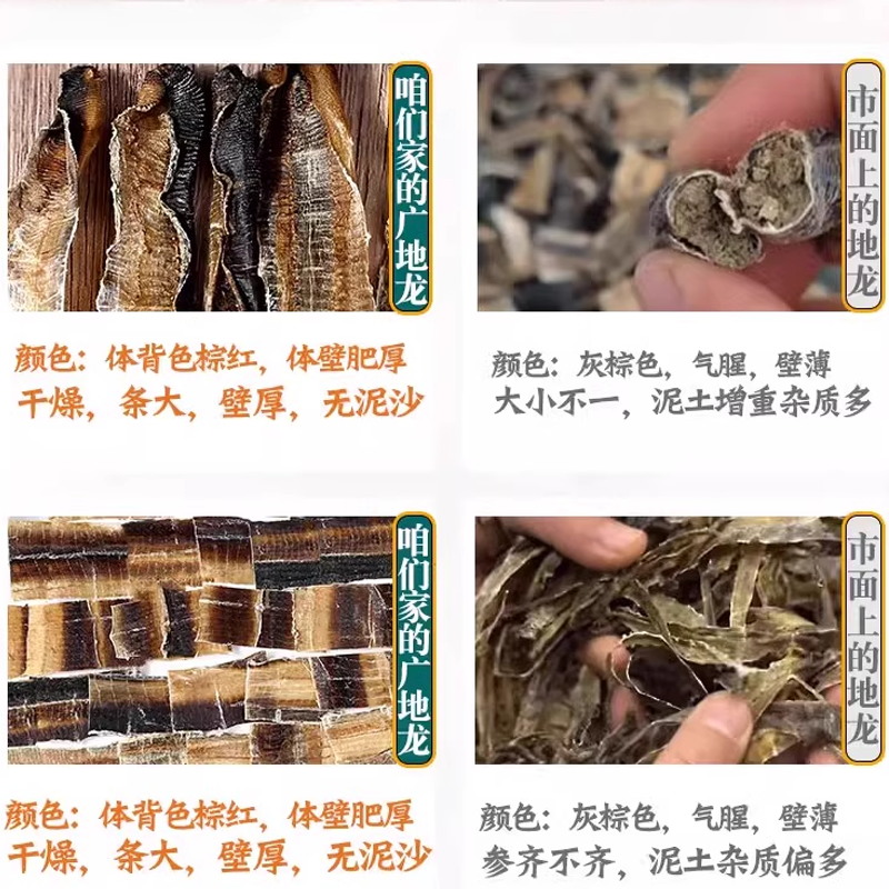 广地龙中药材正品广西水洗无杀全开整条无泥土野生蚯蚓白颈地龙干