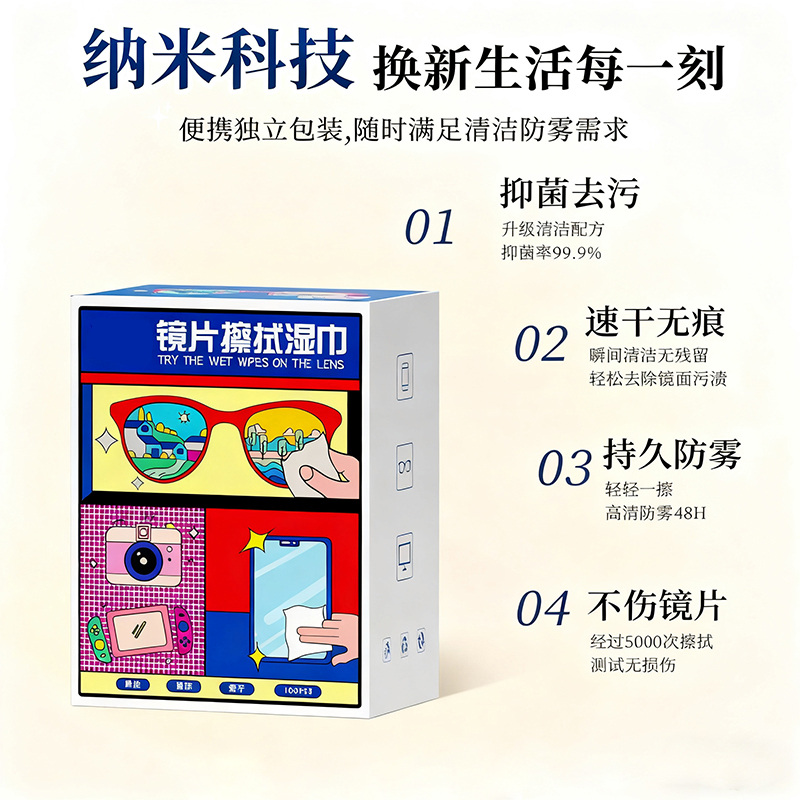 德国标准眼镜清洁湿巾不伤镜片专用擦拭湿纸巾屏幕清洁防雾眼镜布