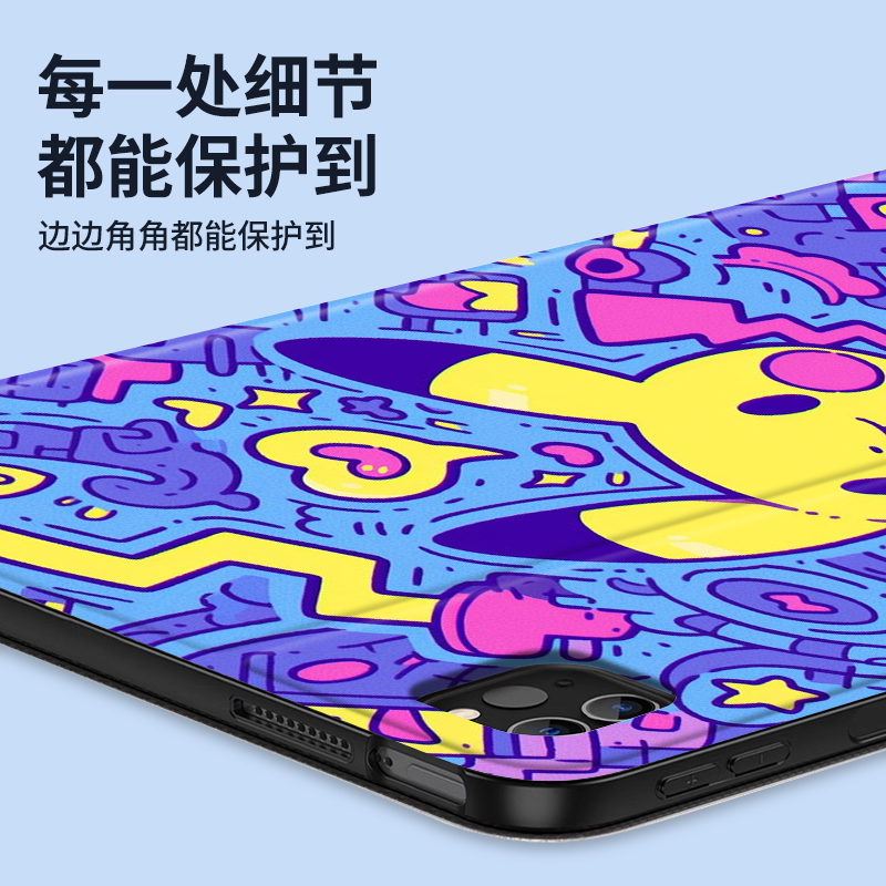 皮卡丘ipad保护套适用苹果air7平板pro11寸ipad9壳2024新款13硅胶air5防摔mini4全包10.9八代9.7书本笔槽A16