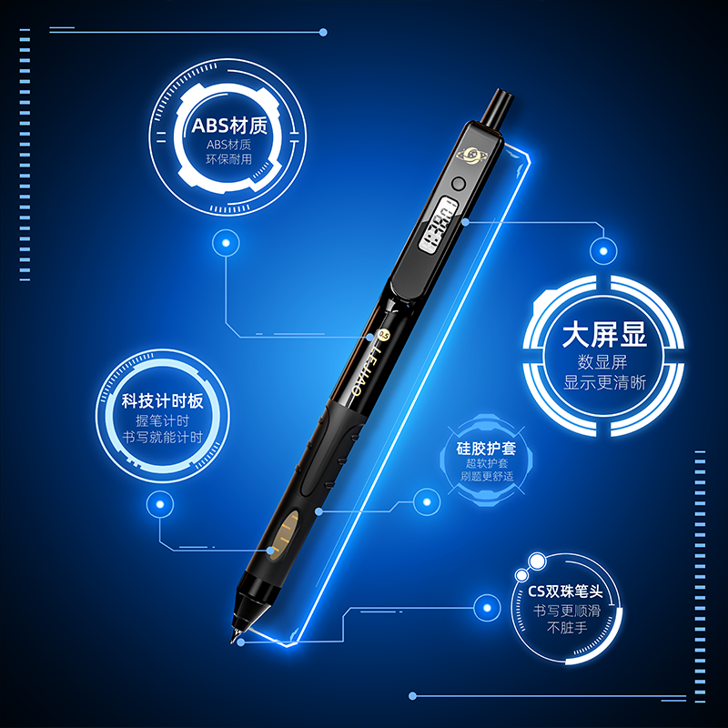 2025超火炫酷黑科技时控笔计时器按动中性笔黑色顺滑速干刷题签字圆珠水笔冷门文具初中生专用耍帅暗藏玄机的