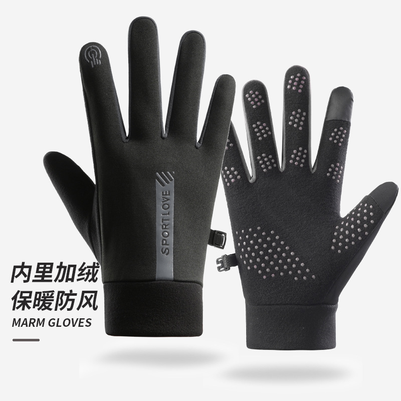 新款冬季保暖手套加绒加厚防寒触屏骑行开车户外运动德绒棉手套