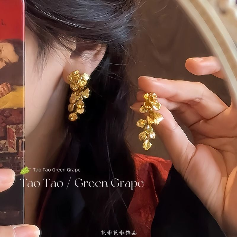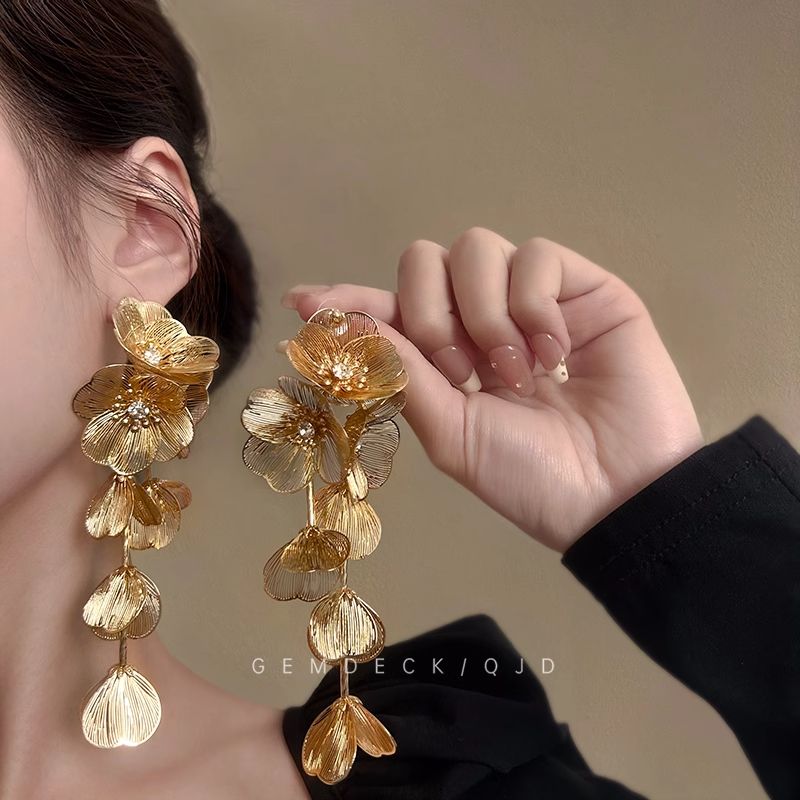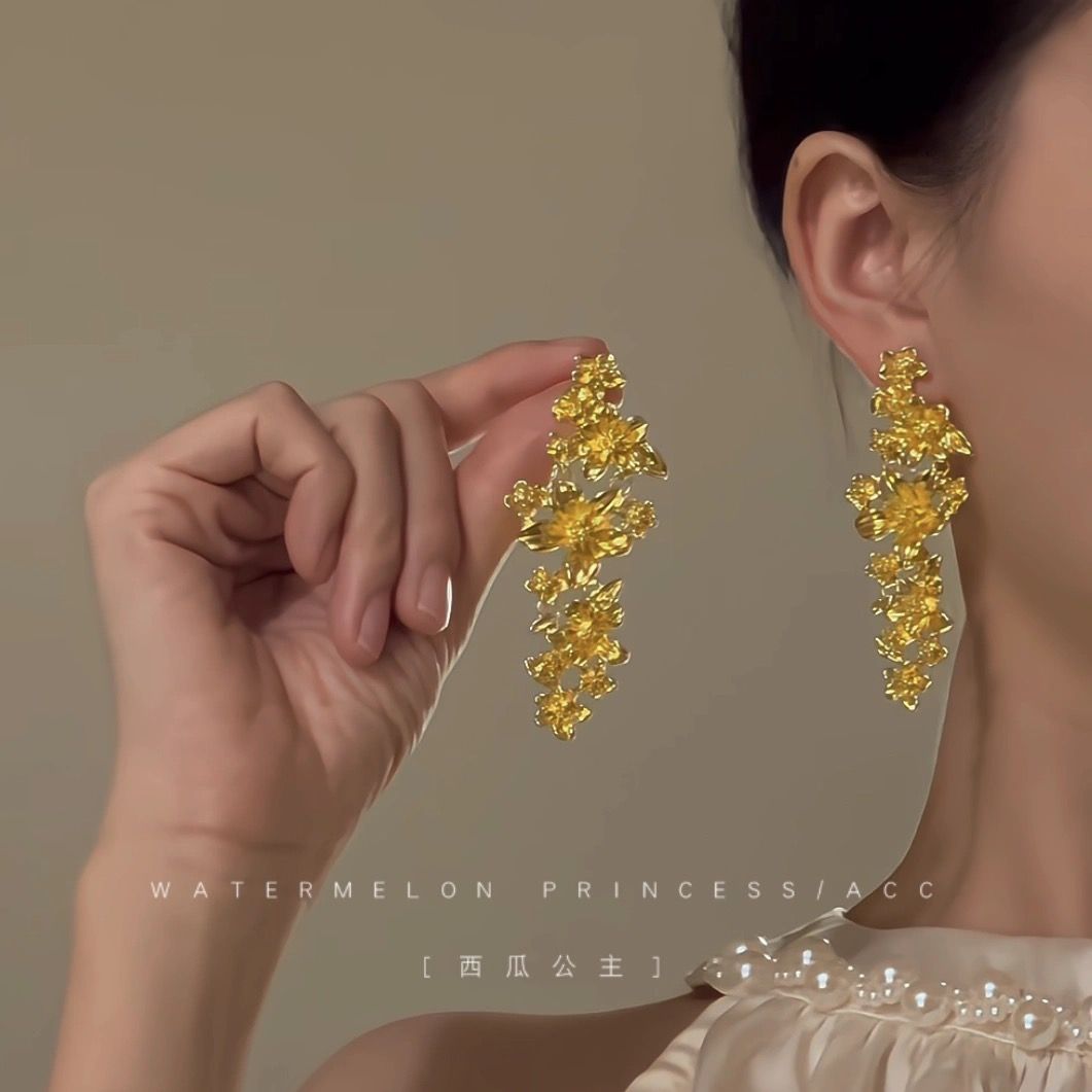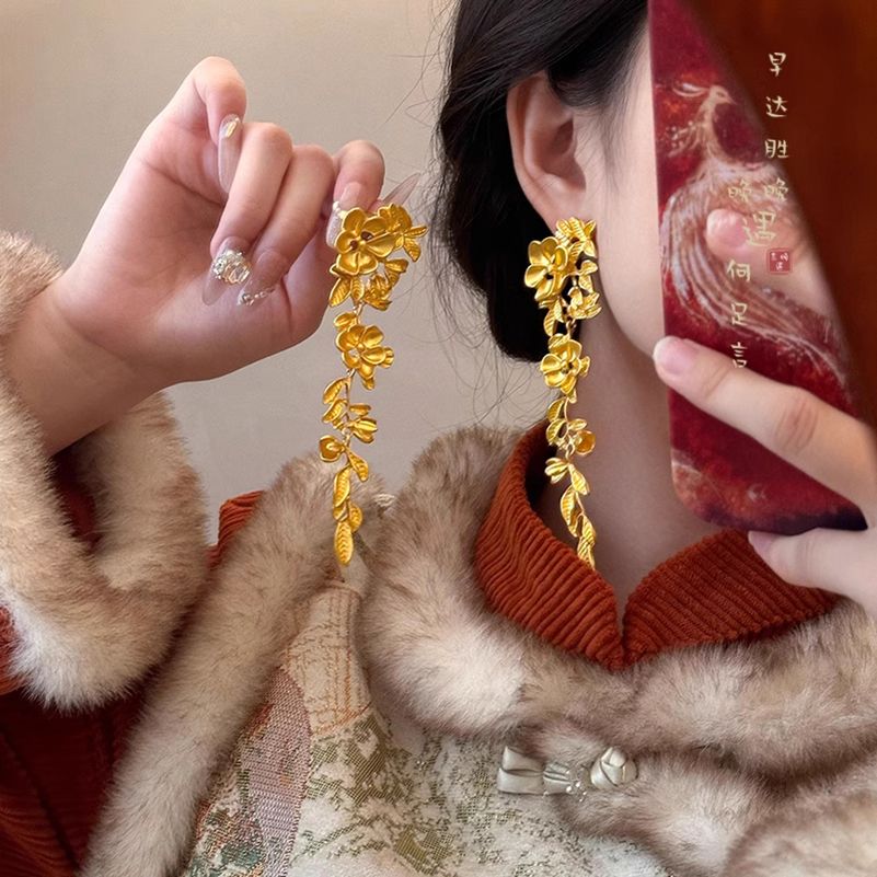 鎏金碎叶~新中式国风金色花朵流苏耳环女耳夹轻奢高级感气质耳饰