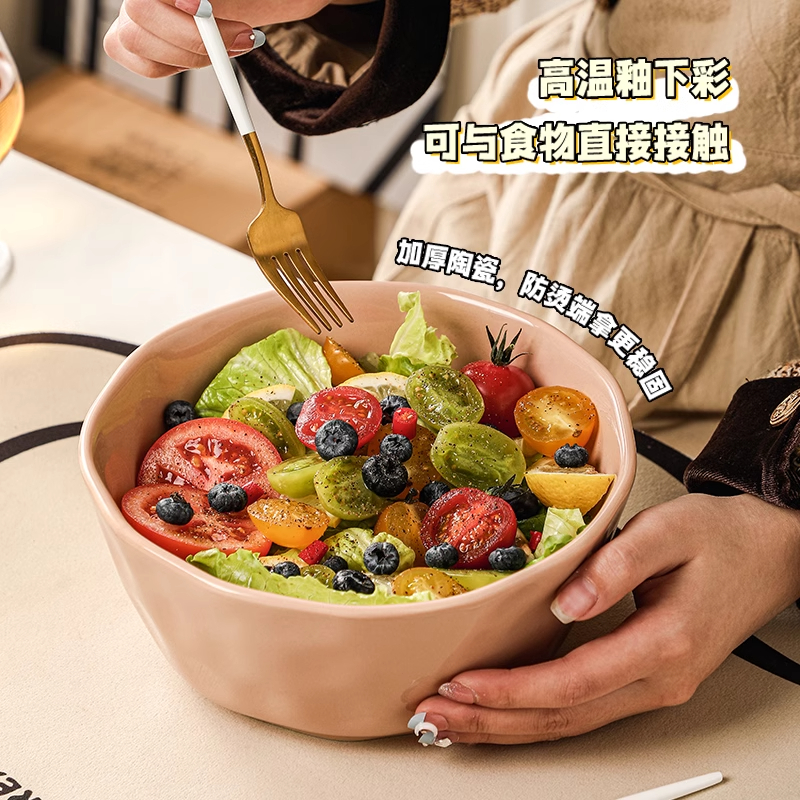风餐具碗家用2025年新款陶瓷汤碗特别好看的碗奶黄奶绿超大号瓷器